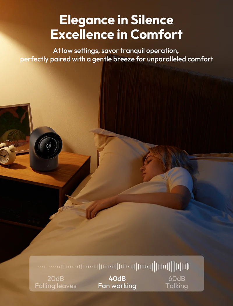 The Aecooly Chic 01 Touch Control Table Fan TB01 is a premium desk fan designed for modern home, office, and travel use. With an advanced 100-level speed control, this fan gives you ultimate precision over airflow. A short press increases speed by 20 levels, while a long press lets you fine-tune airflow level-by-level. Whether you need a gentle breeze for sleep or a powerful gust to beat the heat, the Chic 01 puts control directly in your hands.
