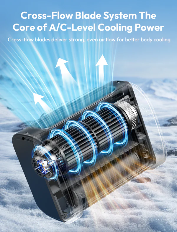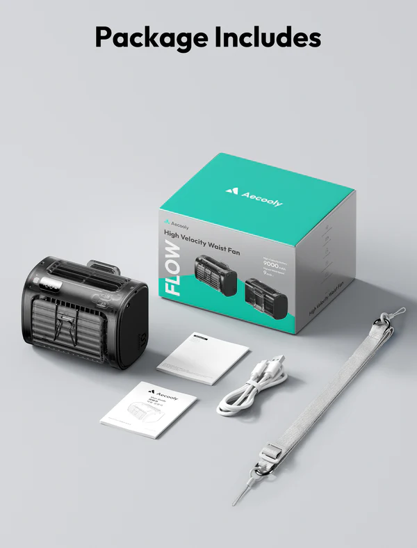 The Aecooly Flow 01 9000mAh is a revolutionary 4-in-1 wearable waist fan designed to keep you cool anytime, anywhere. With its innovative A/C-style cross-flow blade design, this fan delivers smooth, wide airflow that cools your upper body evenly without the harsh choppiness of traditional fans.